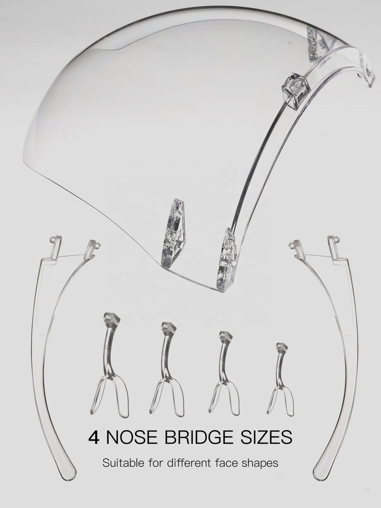 Face shield Splash Protection is light and durable frame for continuous wearing. It helps to cover eyes, nose and mouth. It aims to protect the wearer's entire face (or part of it) from hazards such as flying objects and road debris, chemical splashes (in laboratories or in the industry), or potentially infectious materials (in medical and laboratory environments).