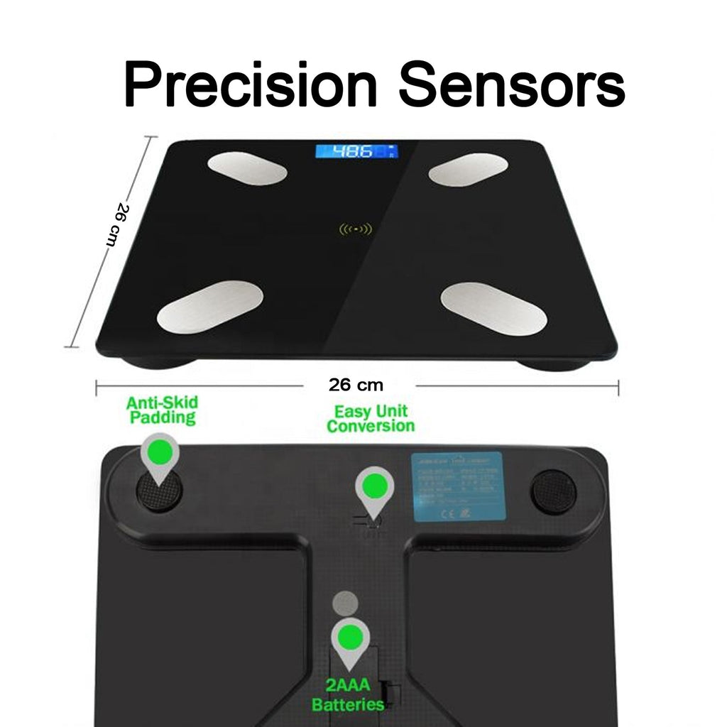13 Body Composition Measuring Function :- Use Bio-Electrical Impedance Analysis (BIA) technology, the wireless digital scale not only shows body weight, but also syncs data to your app including body fat, water, muscle mass, BMI, Includes BMR, bone mass, protein, skeletal muscle and other data. It lets you clearly know more data about your body in time and tracks progress easily on your phone.