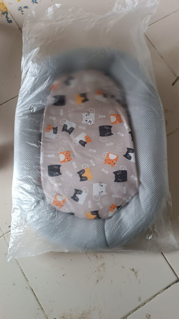Cat bed, Plush cat bed, Soft pet bed, Round cat cushion, Pet sleeping bed, Bed for cats, Cat sleeping cushion, Indoor cat bed,Cartoon cat print bed, Cute pet bed design,Decorative cat bed, Comfy cartoon bed