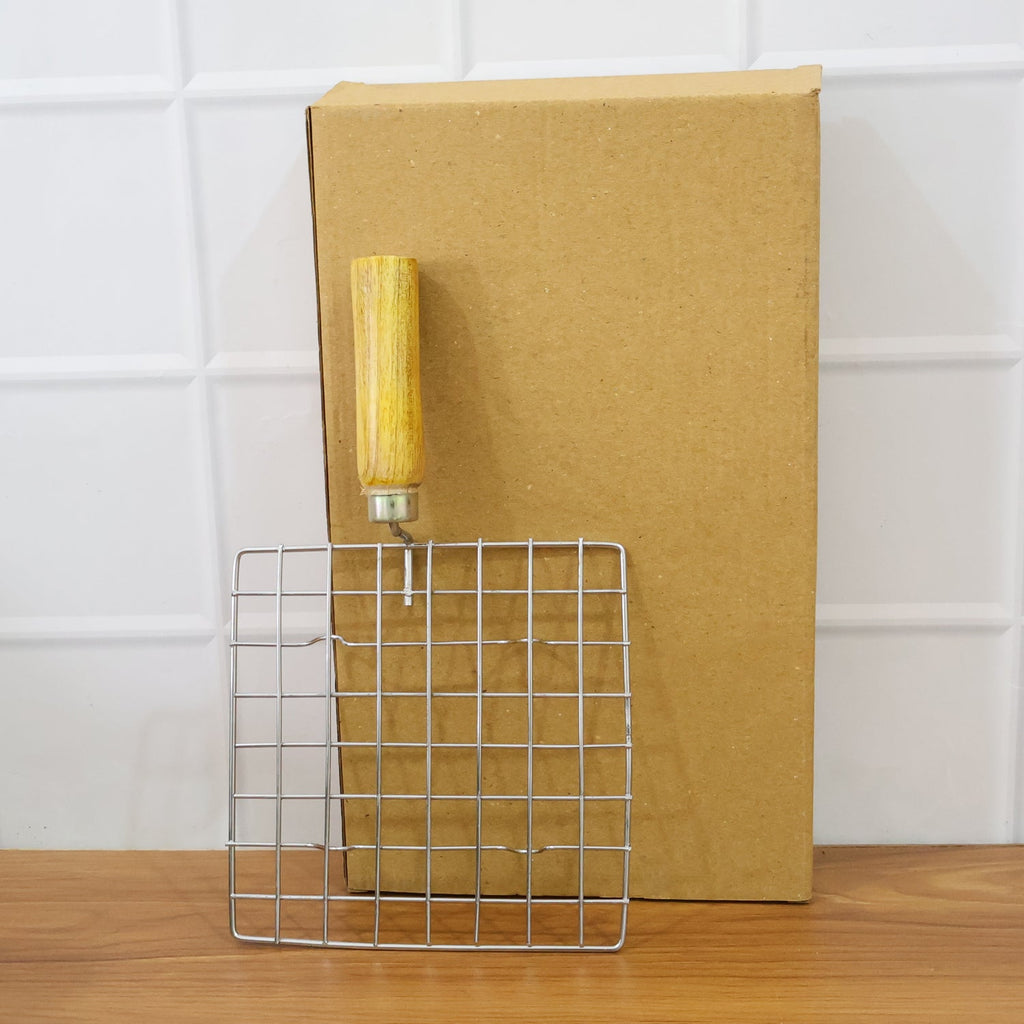 Kitchen Square Stainless Steel Roaster Jali, Barbecue Grill with Wooden Handle