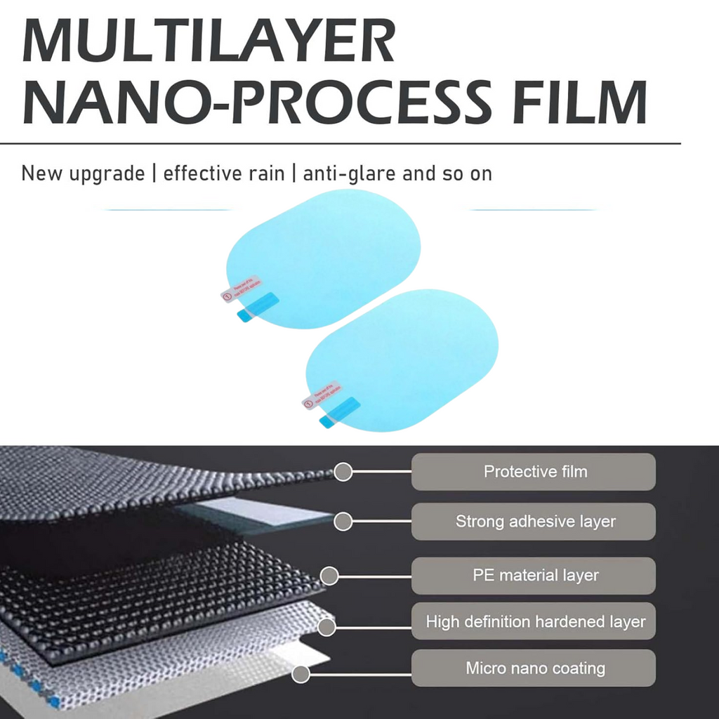 - SAFE DRIVING: This car rearview mirror film has protective film and Nano-coating, has high light transmittance, multi-function side mirror waterproof film, even in rainy and foggy days, it can provide you with unprecedented service, safe and Clear vision.