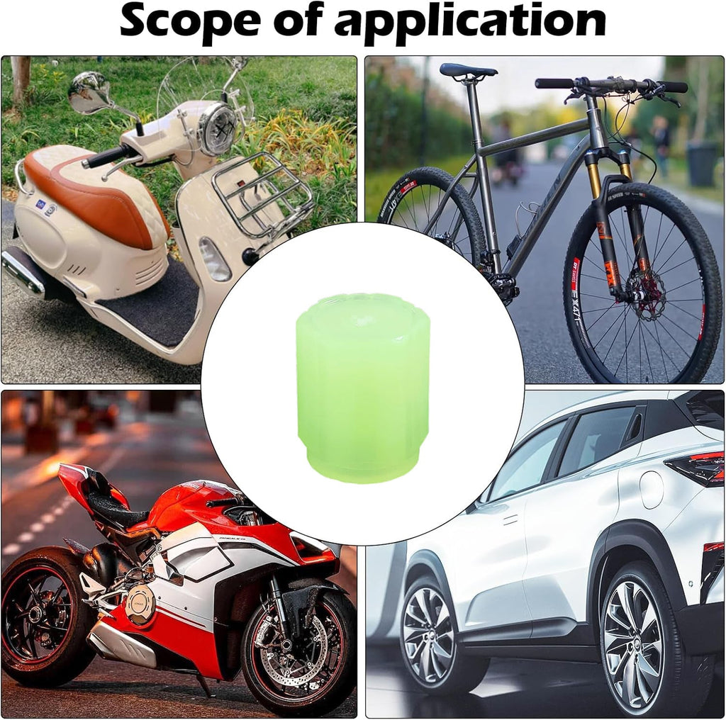 Enhanced Visibility: These valve caps exhibit a striking fluorescent effect on dimly lit roads, lending a sophisticated and radiant appearance to your vehicle. Elevate your nighttime driving experience.