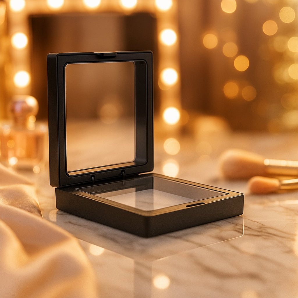 Showcase your beautiful jewellery pieces in style with this elegant Transparent Floating Jewellery Display Box. Designed with dual flexible transparent membranes, it securely holds jewellery items in place, creating a unique “floating” 3D visual effect. Perfect for displaying rings, earrings, pendants, coins, or gemstones, this frame provides both clarity and protection. Its magnetic lock mechanism allows easy opening and closing, while the detachable offers stable and adjustable display angles. Crafted with a durable black frame, it adds a modern and professional touch to retail counters, exhibitions, or personal vanity setups.