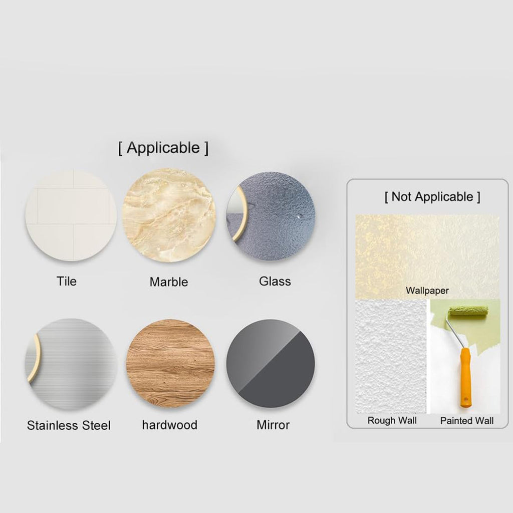 • Mounting Surface: Smooth, dry, non-porous walls (ceramic tile, glass, mirror, metal, sealed laminate/acrylic)