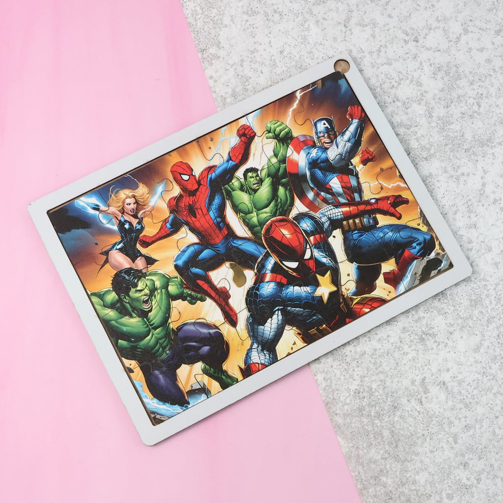 Kids Educational Wooden Jigsaw Puzzle Board – Mix Design Cartoon / Animals / Superhero Themes, Early Learning Brain-Boosting Picture Puzzle for Children (1 Pc)